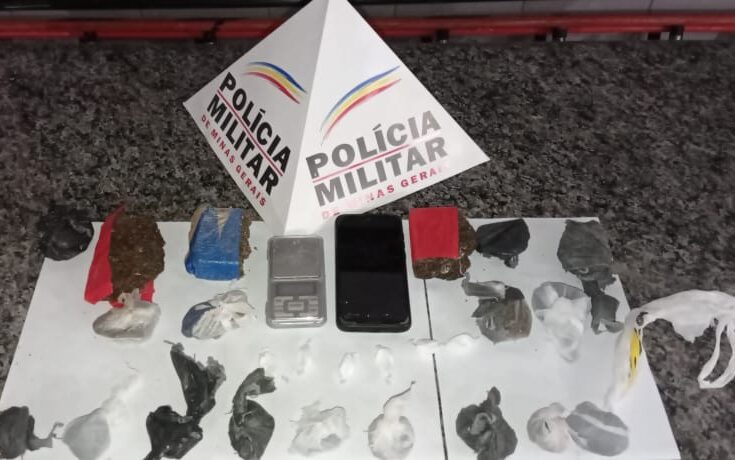 Foram localizados uma balança de precisão, celular, seis papelotes de cocaína e nove buchas de maconha.