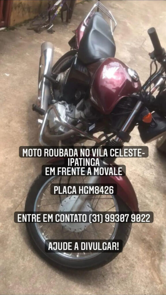 IPATINGA – Furto de veículo no bairro Vila Celeste em Ipatinga. A PM foi acionada na Rua Antônio Boaventura Batista, onde segunda um rapaz de 26 anos, ele teve furtada a moto Honda 150 Fan vermelha placa HGM-8426 de Açucena furtada.