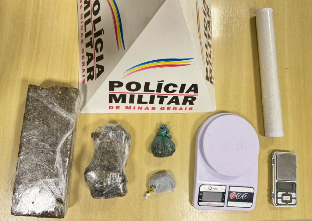 O material foi recolhido e identificado como entorpecentes. Dentro do apartamento, os policiais encontraram uma barra e três porções de maconha, além de duas balanças de precisão, um rolo de filme plástico e um celular.