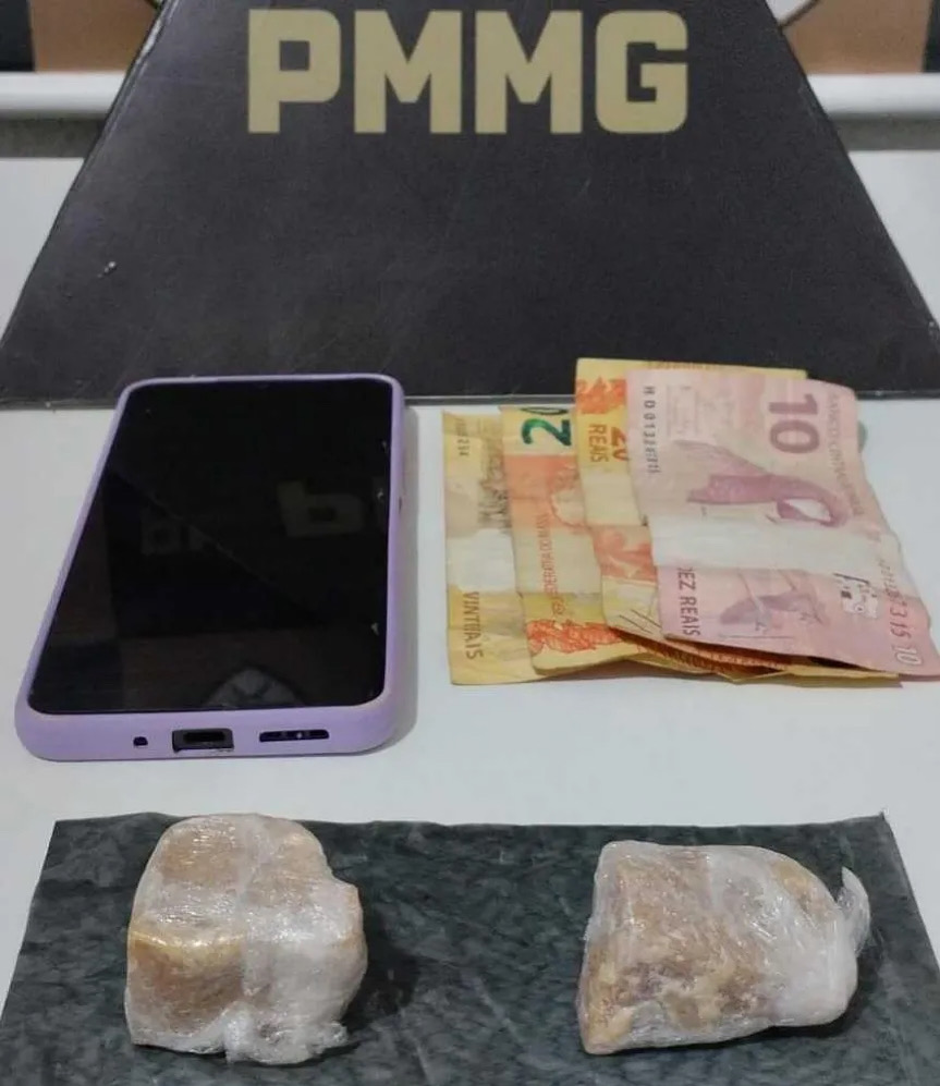 Durante a abordagem, os militares notaram o nervosismo da jovem e realizaram buscas no veículo. Na sacola, foram encontradas duas pedras grandes de crack, R$ 70 em dinheiro e um celular.