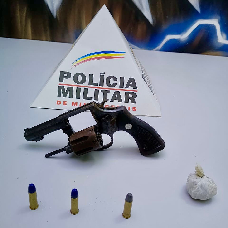 O suspeito, de 22 anos, foi preso. Foram apreendidos um revólver Taurus calibre .38, três cartuchos intactos e uma porção de maconha. O caso foi encaminhado para a Delegacia de Plantão.
