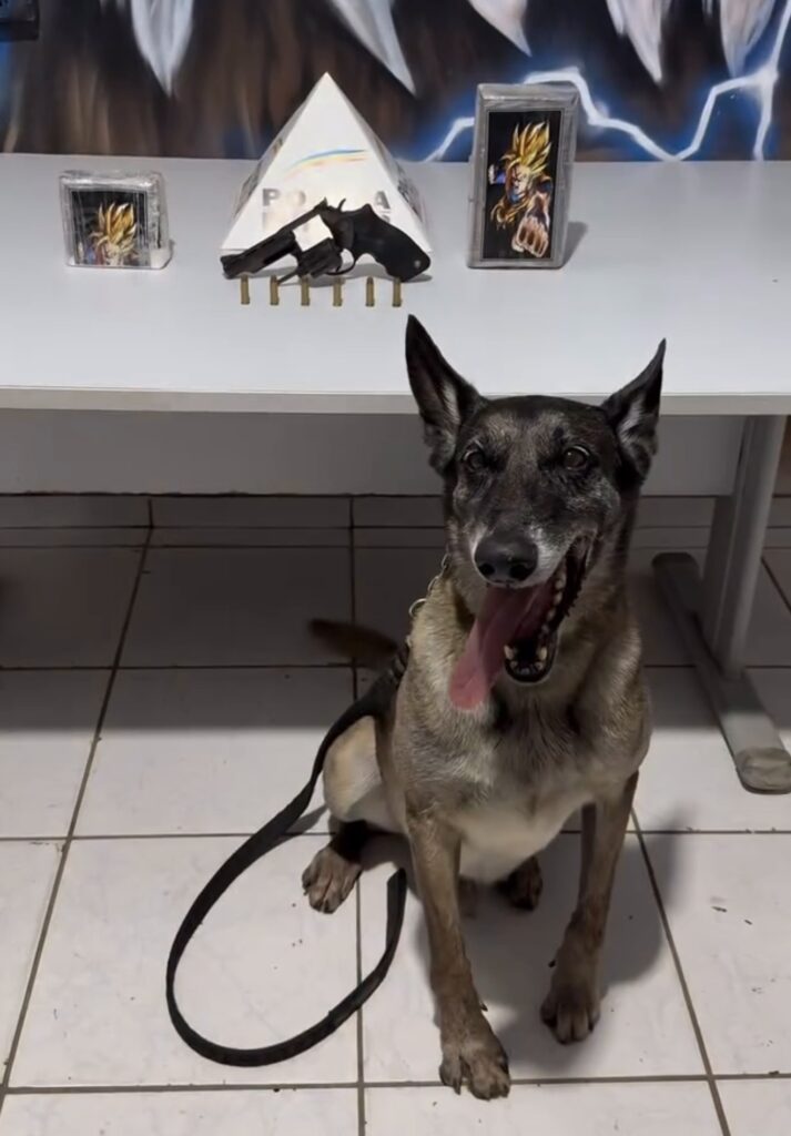 A ação foi resultado de uma operação coordenada a partir de informações sobre o comércio de entorpecentes na região. Durante as diligências, as equipes policiais realizaram a abordagem do suspeito e, com o apoio do cão de faro, encontraram duas barras de cocaína, um revólver calibre .38, seis munições, uma bucha de maconha e R$ 44,00 em dinheiro.