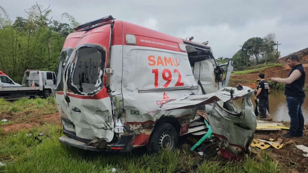 O condutor da ambulância, de 45 anos, morreu no local. O técnico em enfermagem que acompanhava o transporte sofreu possível fratura em um dos membros inferiores, enquanto a gestante apresentou traumatismo cranioencefálico (TCE) e sinais de choque após o impacto.