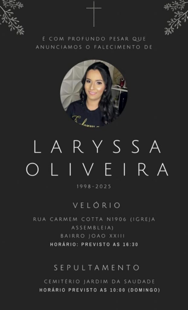 Segundo informações da Polícia Militar Rodoviária, Laryssa conduzia um Ford Fiesta quando, ao fazer uma curva, perdeu o controle da direção, provocando o capotamento do veículo. Populares que passavam pelo local prestaram os primeiros socorros. A vítima apresentava ferimentos graves e foi encaminhada para a UPA da cidade, mas não resistiu.