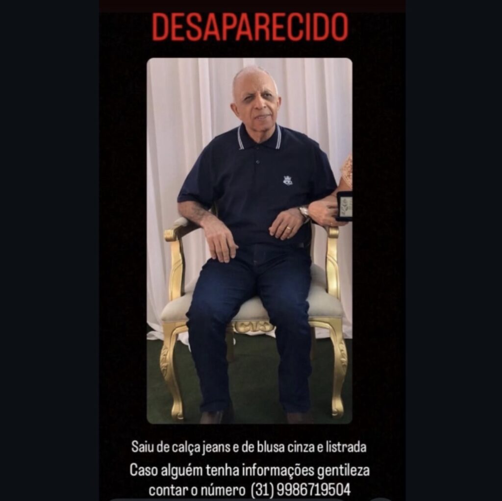 A família de Joel Flaviano Lopes, de 67 anos, busca por informações sobre seu paradeiro após o idoso desaparecer na manhã de sexta-feira (24/11), por volta das 8h, em Ipatinga.