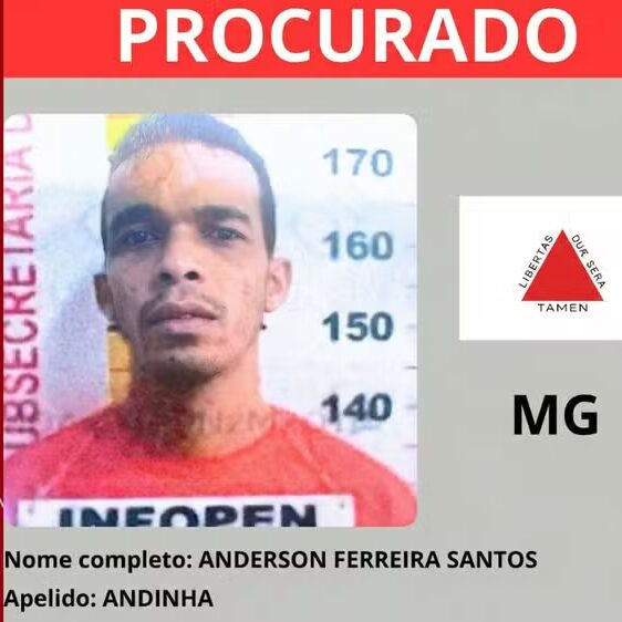 Conhecido como “Andinha” ou “Bala”, ele possui quatro mandados de prisão em aberto: um definitivo, expedido pela Justiça de Contagem, e três preventivos, emitidos pela 1ª Vara Criminal de Teófilo Otoni. De acordo com o portal G1, os crimes atribuídos a ele envolvem tráfico de drogas, associação para o tráfico, uso de documento falso e ameaça.