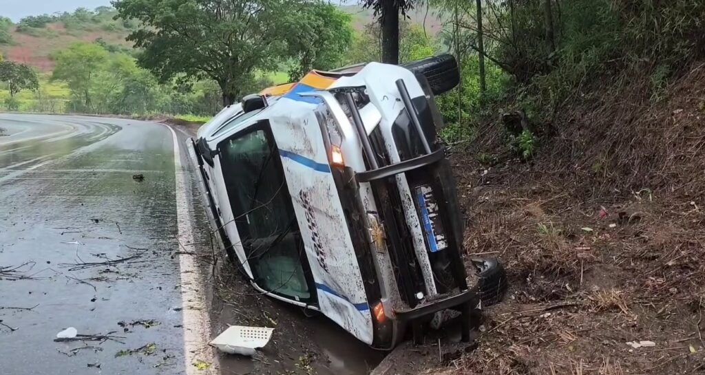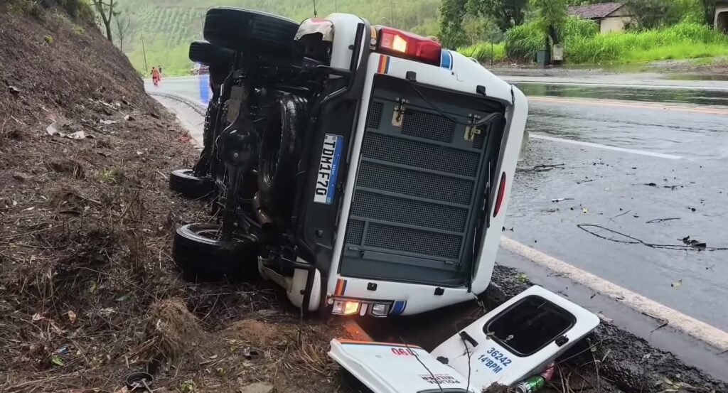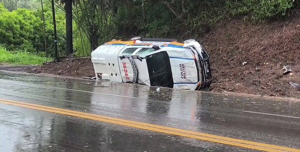 Uma viatura da Polícia Militar se envolveu em um acidente de trânsito na tarde deste domingo (14) na BR-381, em Nova Era, região do Aleixo. O veículo oficial trafegava pela rodovia quando, por razões ainda não esclarecidas, saiu da pista e capotou no quilômetro 326.