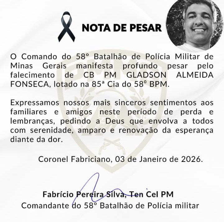 Em nota, o comando do 58º Batalhão lamentou profundamente a morte precoce do policial militar.