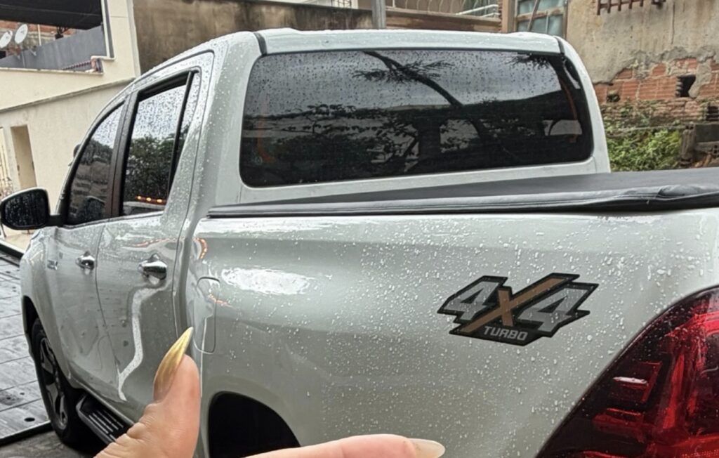 Durante a ação, foram roubados anéis e um cordão de ouro, um iPhone 13, carteira com documentos e cartões bancários, além de uma caixa de som, carrinho e cadeirinha de bebê, e uma piscina inflável que estavam na caminhonete.