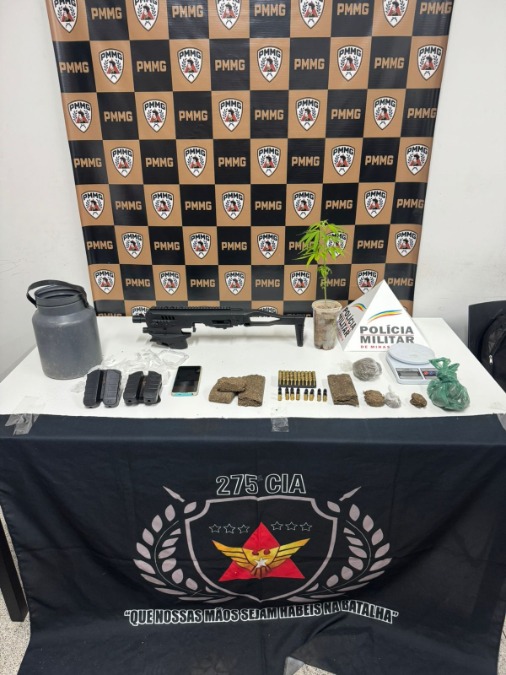Durante diligências na residência, os militares encontraram um pé de maconha, 16 munições calibre .40, dois porta-carregadores de pistola, além de uma coronha estabilizadora de pistola e 50 munições calibre 9mm intactas. Em um dos quartos da casa, foi localizada ainda grande quantidade de maconha, além de uma balança de precisão.