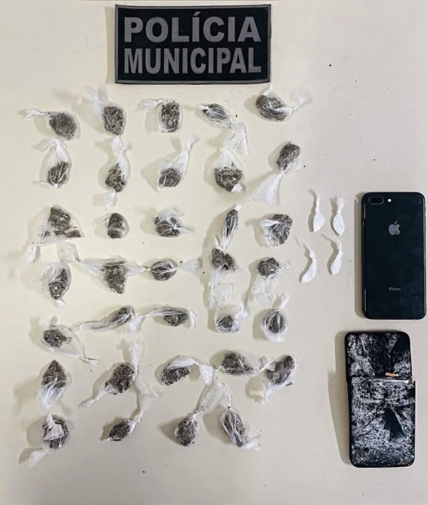 Além das drogas, a polícia encontrou dois aparelhos celulares com o suspeito. Um deles foi arremessado ao chão e danificado pelo próprio indivíduo no momento da abordagem. Ambos foram apreendidos.