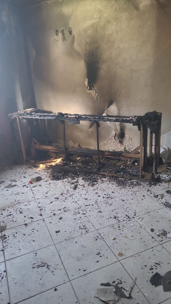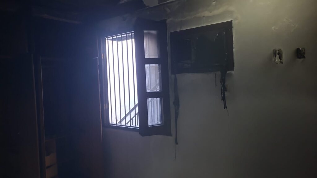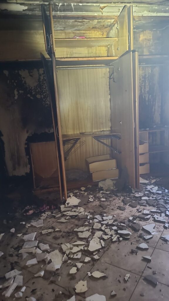 Durante a vistoria, os militares identificaram dois focos de incêndio: um sofá no pavimento térreo e um guarda-roupas no segundo pavimento. Aproximadamente mil litros de água foram utilizados para debelar o fogo, além de procedimentos de rescaldo para eliminar o risco de reignição.