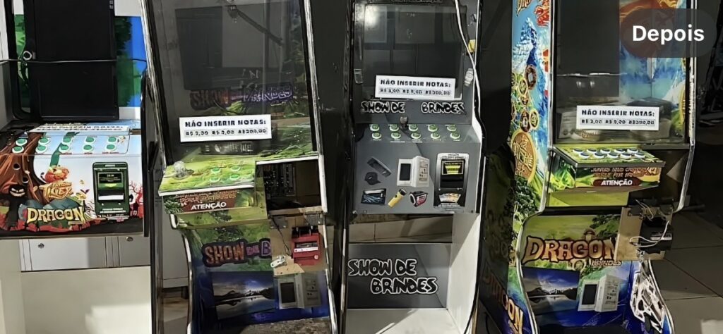 No local, foi constatada a existência de máquinas caça-níqueis instaladas nos fundos do estabelecimento, sendo possível visualizá-las inclusive do lado de fora. As máquinas foram recolhidas e encaminhadas à sede do 14º Batalhão da Polícia Militar.