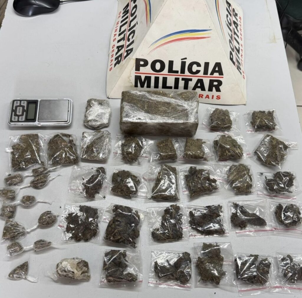 Durante o cerco policial, os militares visualizaram um dos suspeitos, de 19 anos, dispensando uma bolsa com entorpecentes na tentativa de evitar o flagrante. No interior da bolsa, foram localizados uma balança de precisão, uma barra, 29 porções e 11 buchas de maconha.