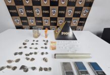 Durante o cumprimento de mandado de busca e apreensão, as equipes realizaram cerco e adentraram o imóvel alvo da operação. No local, foram apreendidas 19 pedras de crack, seis buchas de maconha, três porções de cocaína, quatro aparelhos celulares e um rolo de plástico filme, materiais comumente utilizados no comércio de entorpecentes.