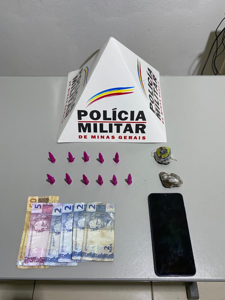 Durante a abordagem, foi constatado que o material dispensado continha entorpecentes, sendo pinos de cocaína e uma porção de maconha. Outro indivíduo que se encontrava no local também foi abordado. Embora nada de ilícito tenha sido localizado em sua posse imediata, durante buscas em seu veículo foi encontrado um pino de cocaína. Questionado, ele relatou ser usuário de drogas e afirmou ter adquirido o entorpecente instantes antes.