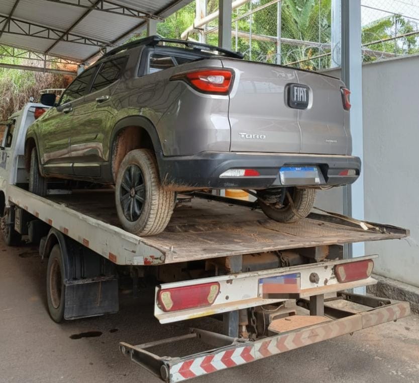 Após receber informações de que uma caminhonete Fiat Toro estaria circulando na localidade, uma equipe policial se deslocou até o endereço indicado. O automóvel foi localizado na residência do sogro de um jovem de 23 anos.