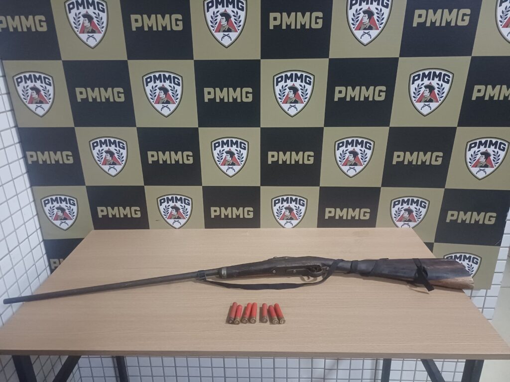Durante patrulhamento, a guarnição visualizou uma motocicleta em atitude suspeita e realizou a abordagem. Com o condutor, foi localizada uma espingarda calibre .36, além de sete munições recarregadas prontas para uso.