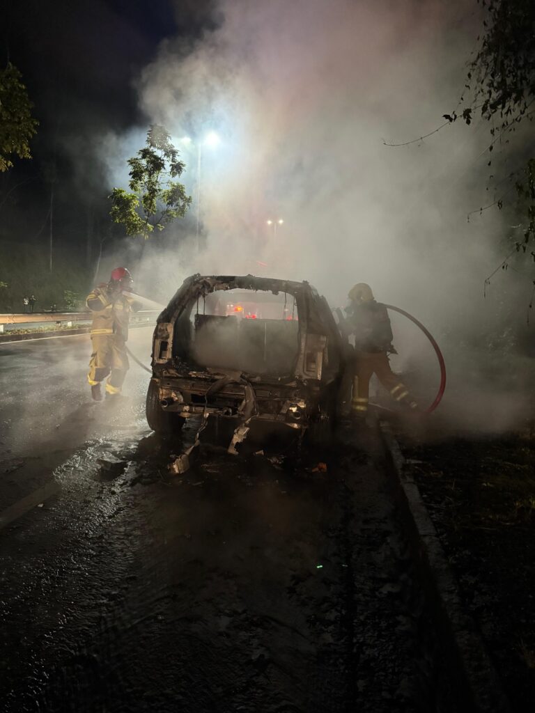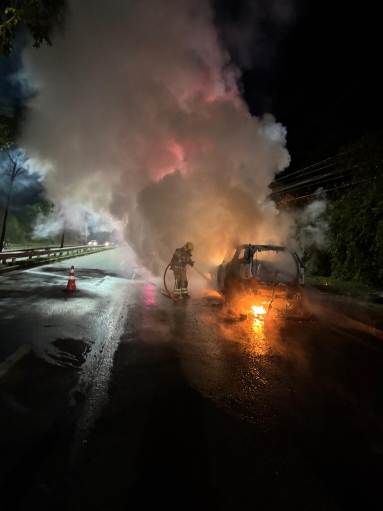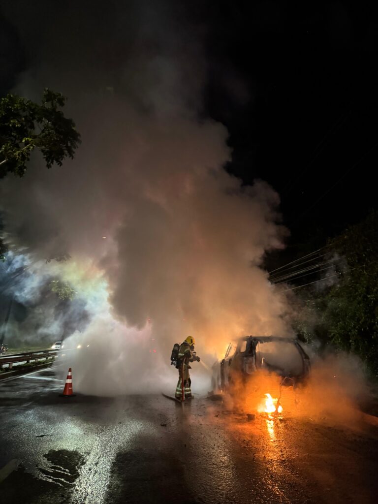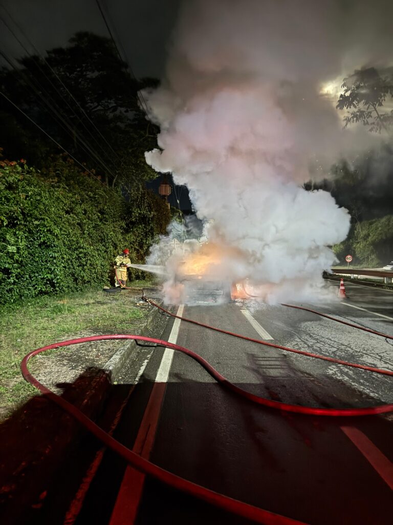 De acordo com o Corpo de Bombeiros, a ocorrência foi registrada por volta das 19h29, no sentido Ipatinga/Coronel Fabriciano. Quando a guarnição chegou ao local, o automóvel já estava em chamas em fase avançada.