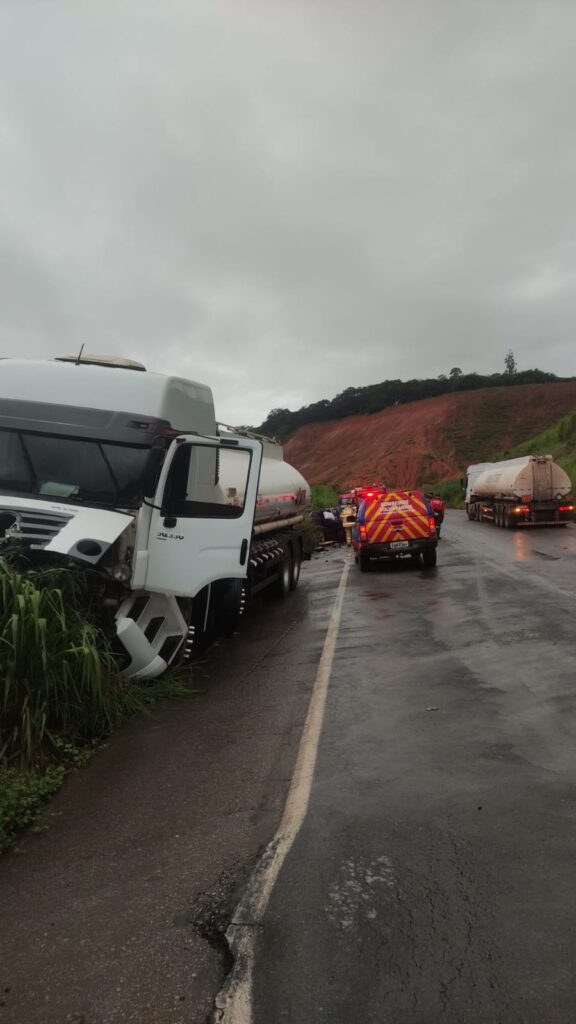 Um grave acidente envolvendo um carro de passeio e um caminhão-tanque foi registrado na madrugada desta quarta-feira (1º), na BR-262, próximo ao trevo de acesso a São José do Goiabal, na região de Ponte Nova.