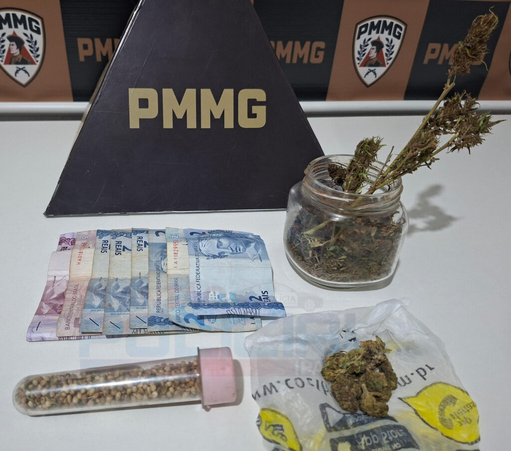 Diante das informações, as equipes realizaram buscas no imóvel indicado e localizaram um pé de maconha com aproximadamente três metros de altura, duas porções de skank, várias sementes de maconha e R$ 22 em dinheiro.